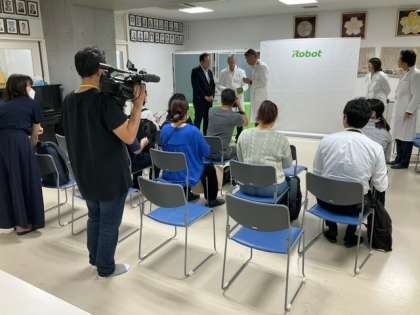 今日は、アイロボット社CEO コリン・アングル氏による、プログラミング特別授業が行われます。コリン氏は、3年ぶりの来日で、下北沢小学校2年生のために特別授業を行ってくださいます。写真は、授業に先立ってのセレモニーです。