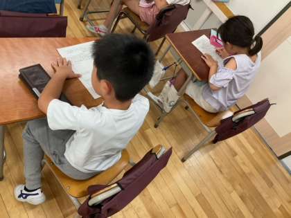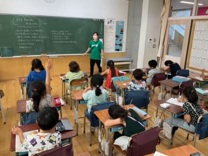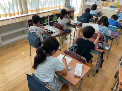 生活科の時間です。「まちをたんけん 大はっけん」町探検を通して、どんなことが知りたいですか?