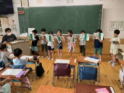 国語の時間です。音読発表会をしています。友達の音読を聞いて、どんなところが良かったですか?