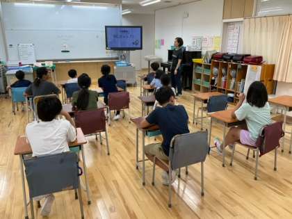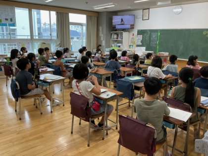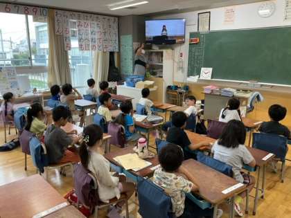 今朝は、放送での音楽朝会です。全校で「空にジャンプ!」を元気いっぱいに歌っています。