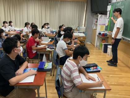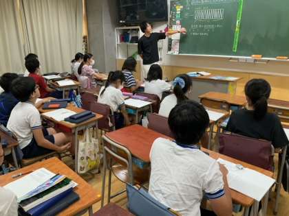 算数の時間です。「円の面積」の公式の求め方を考えています。