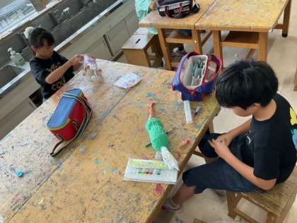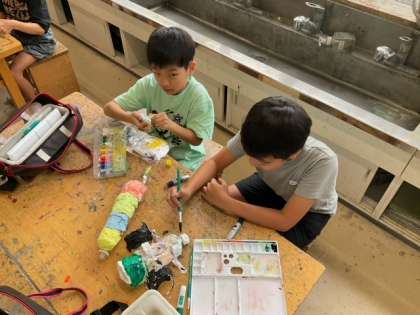 図工の時間です。「新種☆発見」続々と新たな生物が発見されています。