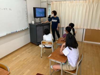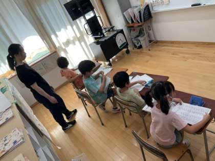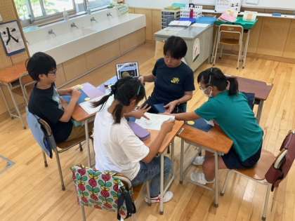 グループ学習の時間です。高学年のみなさんは、中秋の名月をテーマに、作品づくりをしています。