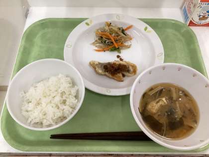 献立 ご飯、白身魚のねぎソース、野菜のごまだれかけ、じゃが芋のみそ汁、牛乳