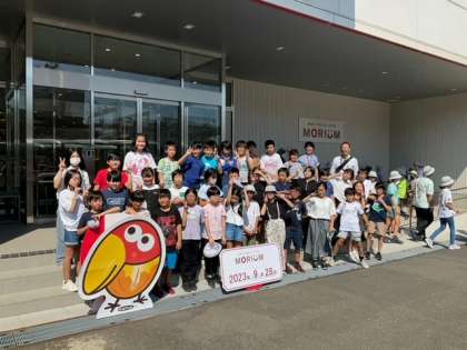 森永製菓鶴見工場に到着しました。記念撮影をして工場見学です。