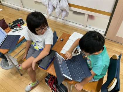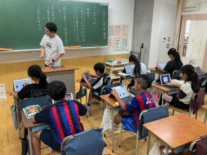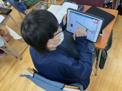 国語の時間です。「ごんぎつね」兵十とごんの心の距離について考えています。