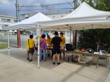受付時間になり、続々と参加する方々が集まってきました。雨も止んで、キャンプ日和です。