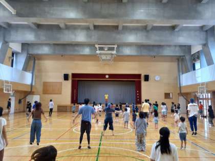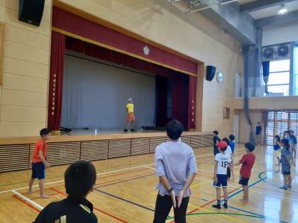 おはようございます。ラジオ体操の時間です。みんな元気に1日を始めています。ラジオ体操第二まで頑張りました。