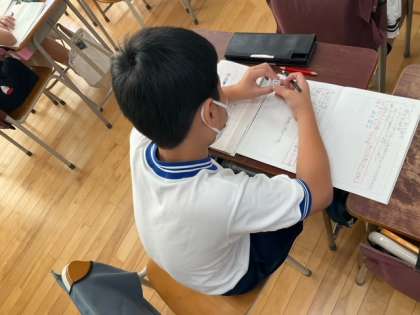 国語の時間です。「みんなで楽しく過ごすために」議題に応じて、目的や条件をはっきりさせて話し合いを進めていきます。