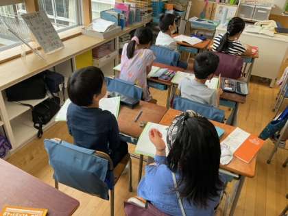 国語の時間です。「ちいちゃんのかげおくり」お兄ちゃんとお母さんを一人で待っているときのちいちゃんの気持ちを考えています。
