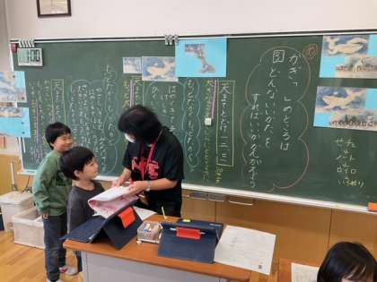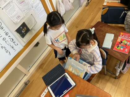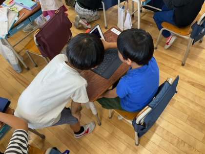 国語の時間です。「くじらぐも」の感想を書きました。ノートをiPadで撮影して、ロイロノートを使って提出しています。
