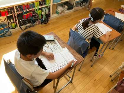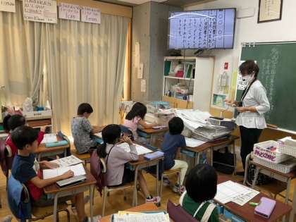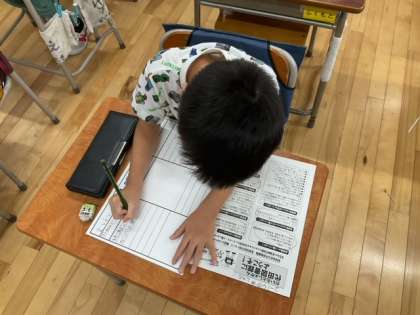 生活科の時間です。2年生は、代田図書館を見学しました。学習したことを新聞にまとめています。