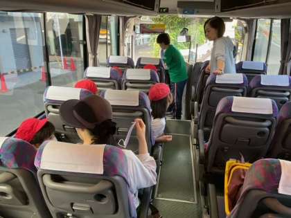 今日は、くるみ学級のみなさんと連合運動会に行ってきます。会場は、大倉総合運動場の体育館です。