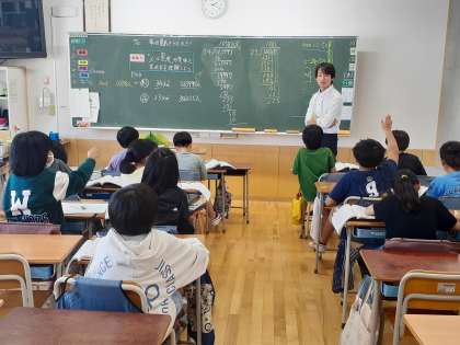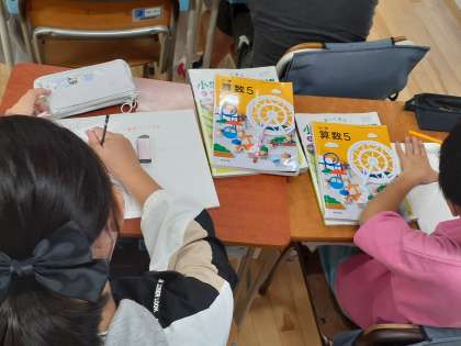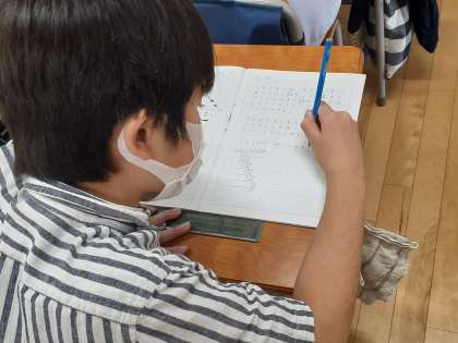 算数少人数の時間です。意味をよく考えて、立式しました。複雑な計算でも最後まで丁寧に解きました。