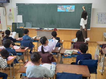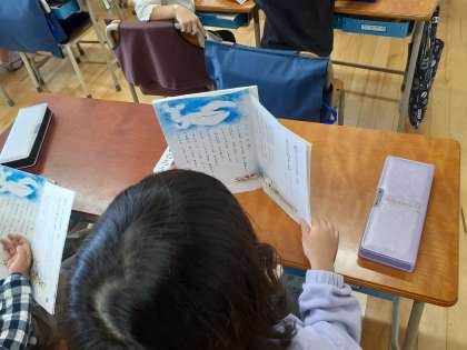 国語の時間です。気持ちを考えて音読しました。とても上手に読めました。