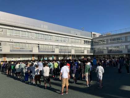 雲ひとつない青空です。さわやかに1日がスタートしました。学校公開では、多くのご来校をいただき、ありがとうございました。