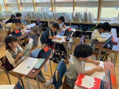 国語の時間です。「ちいちゃんのかげおくり」学習のまとめに入っています。なぜそのように思ったのか、理由が大事ですね。