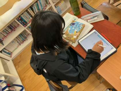 国語の時間です。来週の「ビブリオバトル」に向けて、それぞれが準備を進めています。