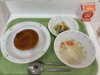献立 ミルクパン、シェパーズパイ、ABCスープ、みかん、牛乳