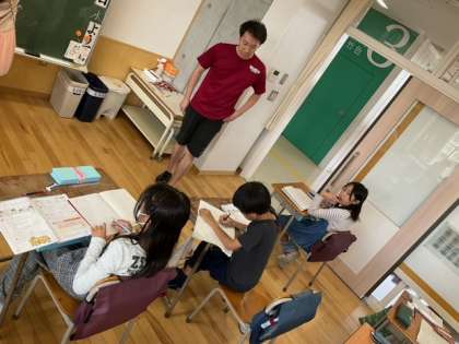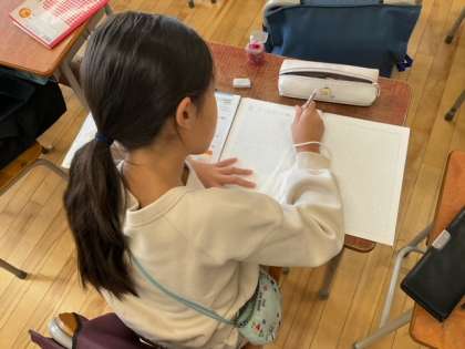 算数の時間です。かけ算の筆算のまとめをしています。「速く正確に」を意識しましょう。