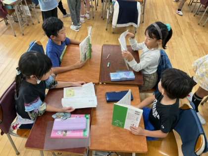 国語の時間です。「お手紙音読発表会」の練習をしています。がまくんやかえるくんになりきって、上手に読んでいます。