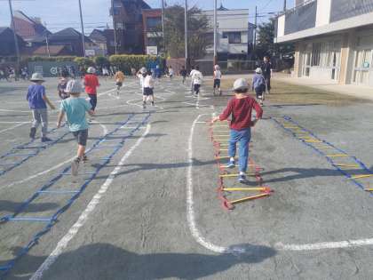 1年生から3年生はわくわくタイムの時間です。青空の下、元気に体を動かしました。体の動かし方もスムーズになってきました。スポーツの秋です。