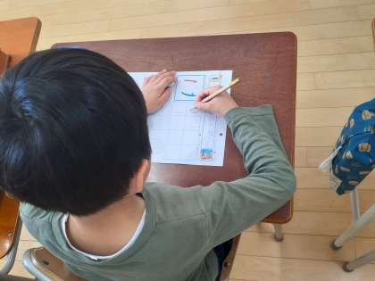 国語の時間です。しりとりをしながら語彙を広げました。書く練習も頑張りました。