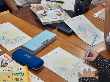 外国語の時間です。自分の1日のスケジュールを班の友達に英語で発表しました。質問もできました。