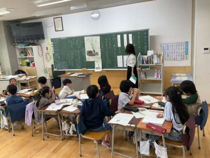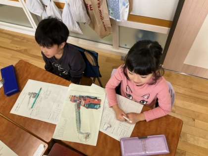 国語の時間です。「じどう車くらべ」はしご車の「しごと」と「つくり」について考えています。