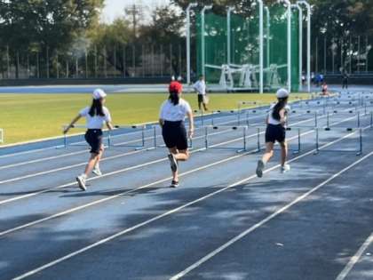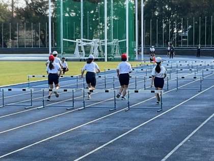 バックストレートでは、ハードル走が行われています。