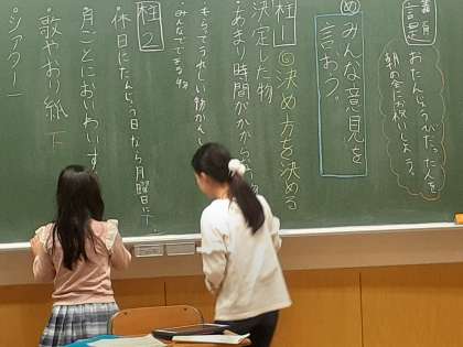 学活の時間です。お誕生日会の仕方について、話し合いました。よりよい会になるよう意見を出し合いました。
