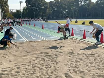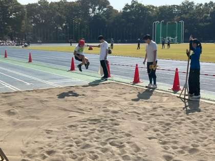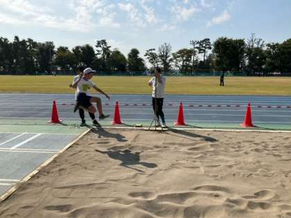 メインスタンド側では、走り幅跳びが行われています。大きなジャンプが生まれています。