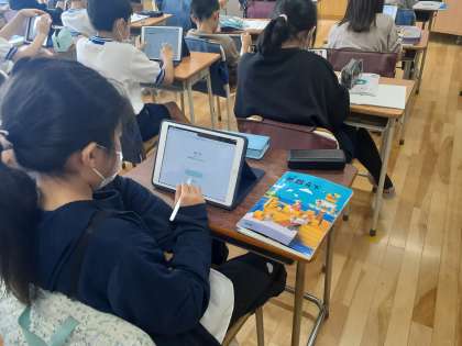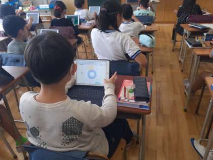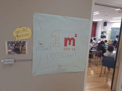 算数の時間です。面積の表し方を学習しました。キュビナを利用して復習しました。