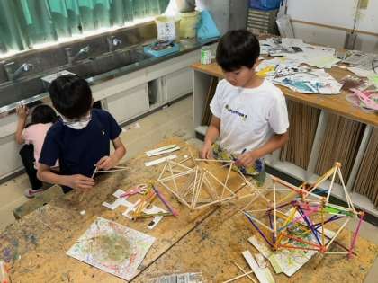 図工の時間です。楽しみながら作品づくりを進めています。すてきな文化祭になりそうです。