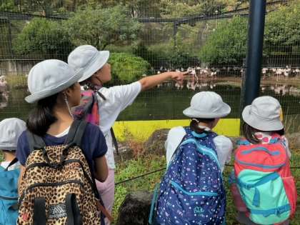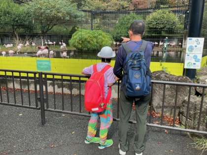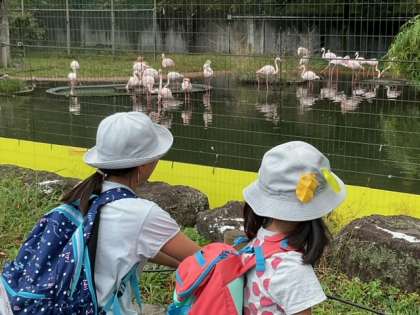 フラミンゴが羽を広げると、調べたとおりに黒かったね。