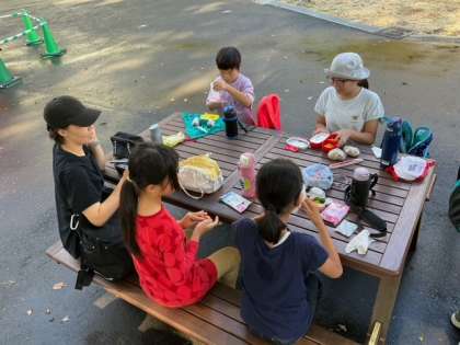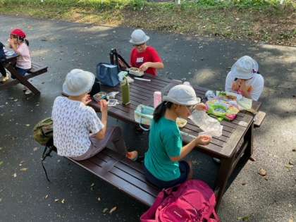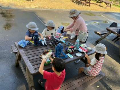カンガルー広場で、お弁当タイムです。いっぱい歩いて、お腹が減りましたね。