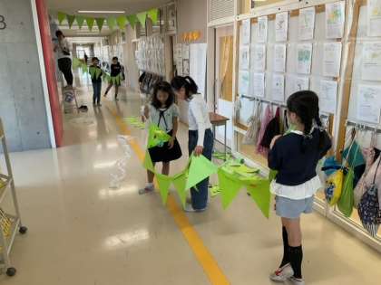 学級活動の時間です。下北沢文化祭を彩る、、手づくりフラッグの飾り付けが進んでいます。当日をお楽しみに。