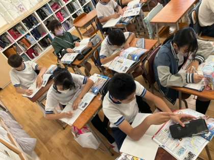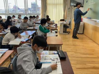 社会科の時間です。明治時代に入りました。「明治維新と富国強兵」について学習しています。