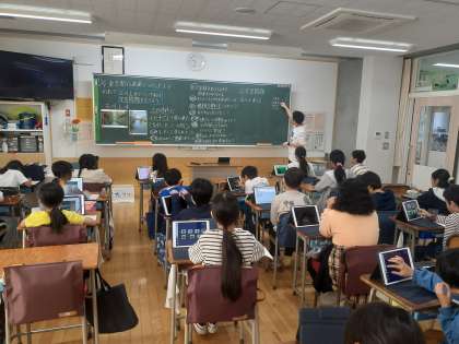 社会の時間です。玉川上水について知り、気付いたことや疑問を基に学習問題を立てました。