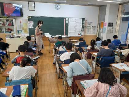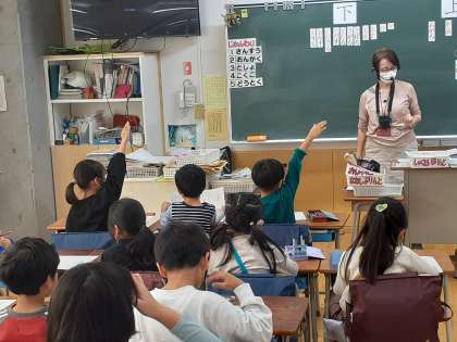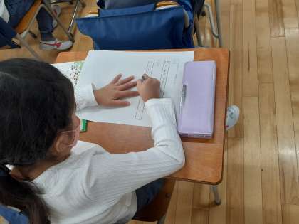 国語の時間です。いろいろな読み方のある漢字を使って、短文を作りました。