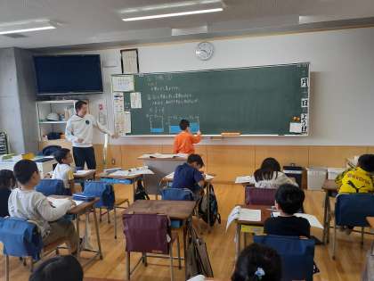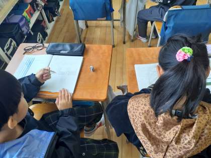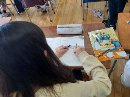 算数の時間です。分数のたし算を図と結び付けて計算の仕方を考えました。