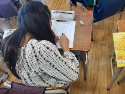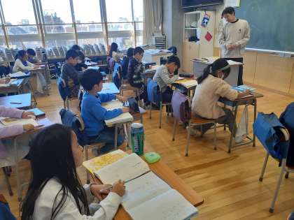 国語の時間です。「3年とうげ」の場面を確かめました。