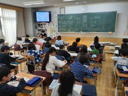 算数の時間です。2倍や3倍にするとどうなるかテープ図をもとに考えました。