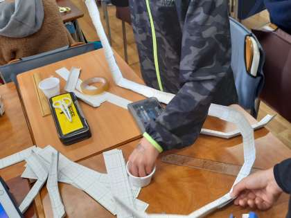 コロがるくんの旅の始まりです。どのようにビー玉が転がるか工夫が楽しみです。