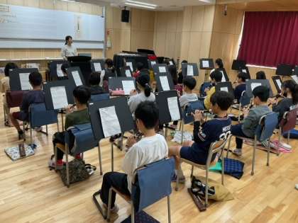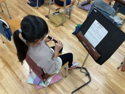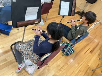 音楽の時間です。「茶色の小びん」の主旋律をリコーダーで演奏しています。きれいな音が出ていますね。