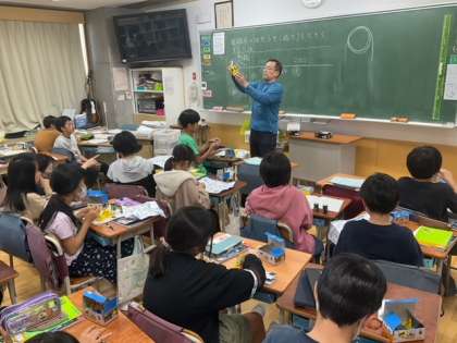理科の時間です。電磁石のはたらき(磁力)を大きくするには、どうすればよいか考えています。
