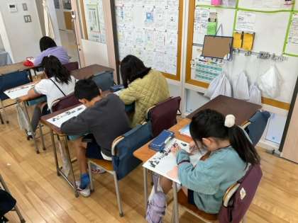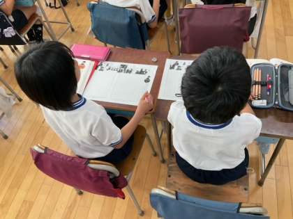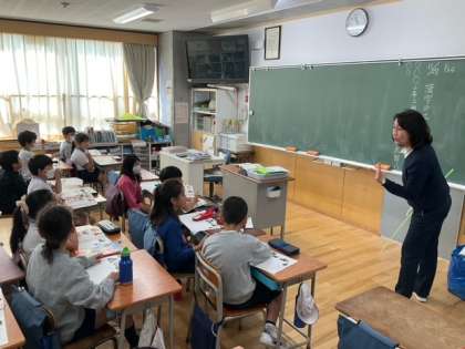 国語の時間です。「漢字の広場」原稿用紙の基本的な使い方を学習しています。