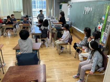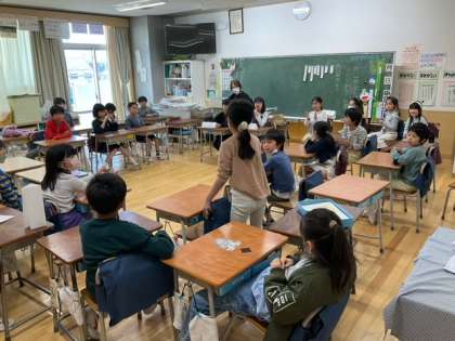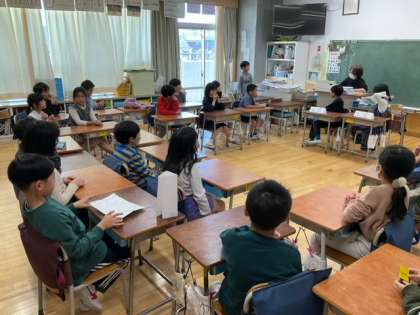 学級会の時間です。議題は、「お楽しみ会」です。みんなが楽しめるような企画を話し合っています。