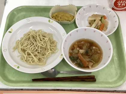 献立 しょうゆつけめん、中華風大根サラダ、スイートポテト、牛乳