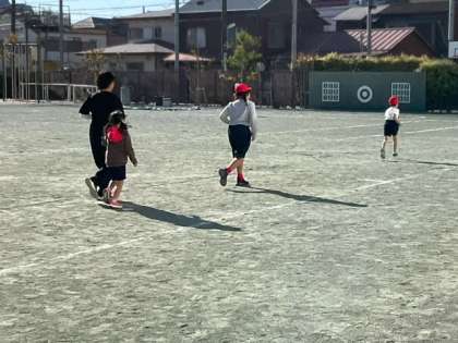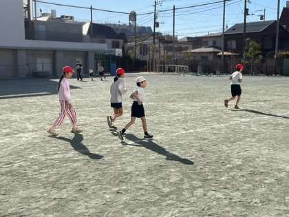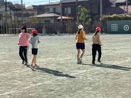 体育の時間です。持久走に取り組んでいます。少しずつ記録を伸ばしていきましょう!